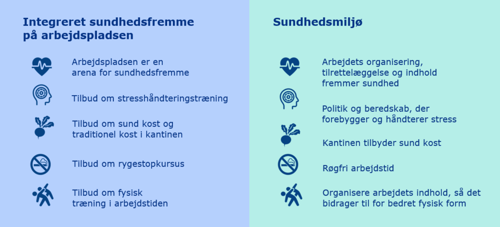 Flere tidligere initiativer har haft fokus på, hvordan sundhedsfremmende tiltag kan integreres i arbejdsmiljøarbejdet, men det har primært været baseret på medarbejdernes motivation og ressourcer. Svagheden ved denne tilgang er, at det kræver et aktivt tilvalg. Det kan betyde, at det i højere grad er medarbejdere, der i forvejen har sunde vaner og fleksibilitet i arbejdet, der anvender og får glæde af sundhedsfremmetilbuddene – men hvad med resten? Det er velkendt, at andelen med dårligt fysisk helbred og langvarig sygdom stiger med faldende uddannelsesniveau.